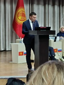 С интересными и актуальными докладами выступили временно исполняющая обязанности директора Департамента государственной политики в сфере высшего образования Министерства науки и высшего образования РФ Е. В. Тумакова, ректор КРСУ С. Ю. Волков, заместитель директора государственного учреждения «Школа-лицей № 7» управления образованием Кызылординской области (Казахстан) Г. Т. Жавзмагина (доклад «Управленческие и методические стратегии развития современной школы в условиях би- и полиязычия»), директор ИРЯ КРСУ М. Дж. Тагаев («Билингвальное образование и билингвизм – главное условие формирования конкурентоспособной личности для современного рынка труда»), проректор по учебной работе Белорусско-Российского университета Н. В. Вологина («Преподавание социально-гуманитарных дисциплин в образовательных организациях Республики Беларусь: вызовы и эффективные практики») и проректор по учебной работе Российско-Таджикского (Славянского) университета Б. Ш. Сайдамиров («О положении русского языка в условиях би- и полилингвизма в Таджикистане»).